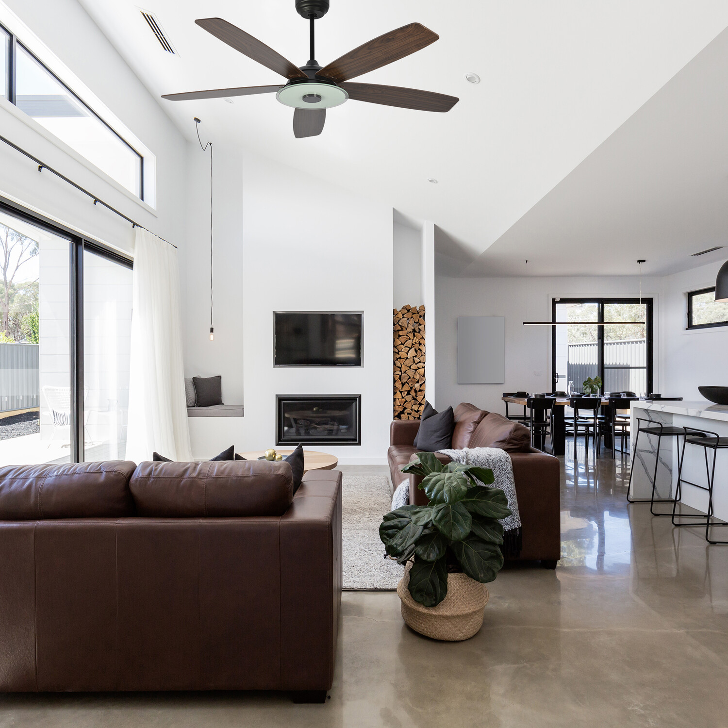 The Journey Smart Ceiling Fan will bring a modern touch to your home décor. It has a fully dimmable, energy-efficient LED kit that has 3000 lumens and 3 light settings: Cool, Neutral, and Warm. This fan is easy to control via the included remote, Amazon Alexa, Google Assistant, Siri Shortcuts, and the CarroHome App. It's even damp-rated to ensure it will fit perfectly any indoor or outdoor spaces such as your living room, bedroom, and outdoor patio.