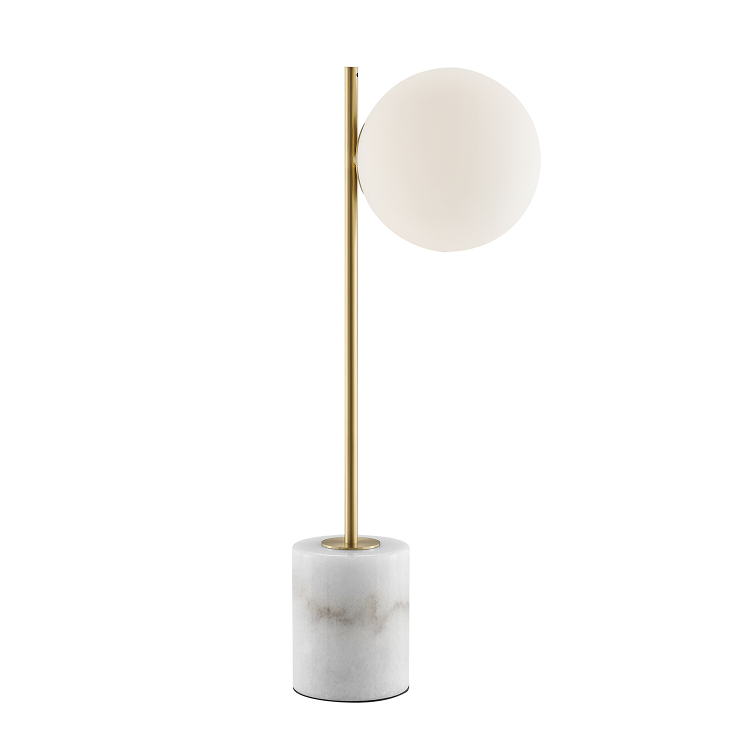 The Anecdoche Table Lamp is the perfect addition to any Mid-century Modern-inspired space. The sleek finish and glass shade lend a look of sophistication, while the luxe marble base adds an extra touch of elegance and stability to ensure it stays firmly in place on any table or desk. With its energy-efficient LED bulb, this lamp provides ample illumination without consuming excessive energy or generating unwanted heat. Its simple and elegant design blends seamlessly with any decor style, making it a perfect choice for any modern or transitional space.