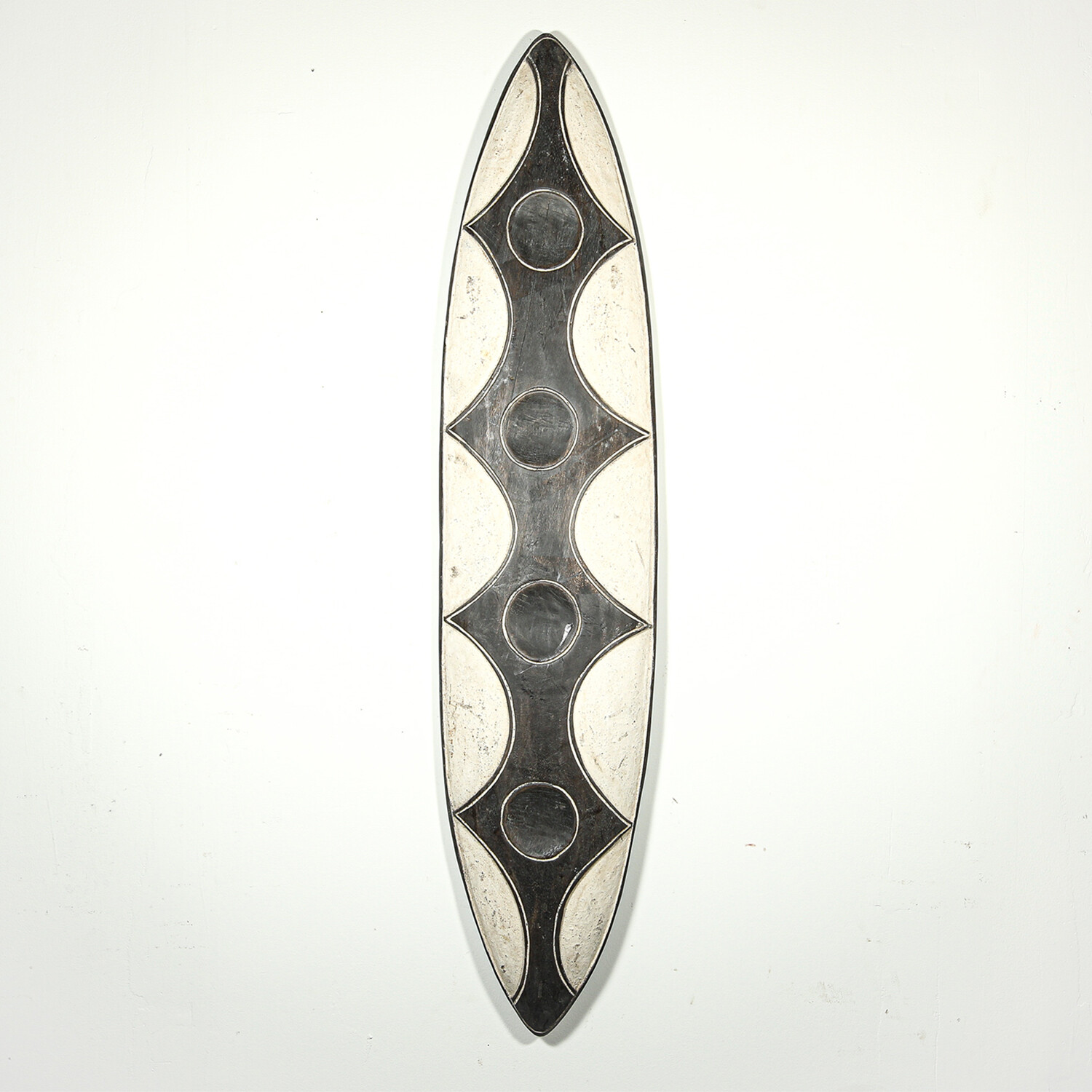 Crafted by artisans in Chams and Fumban, Cameroon, these impressive wooden shields take inspiration from older traditional shields used in battle or ceremonial dance. Each one makes for a fantastic statement piece whether displayed on a shelf or in groupings on your wall. The geometric designs and organic materials add a stunning natural element to your space that blends beautifully with any modern decor.