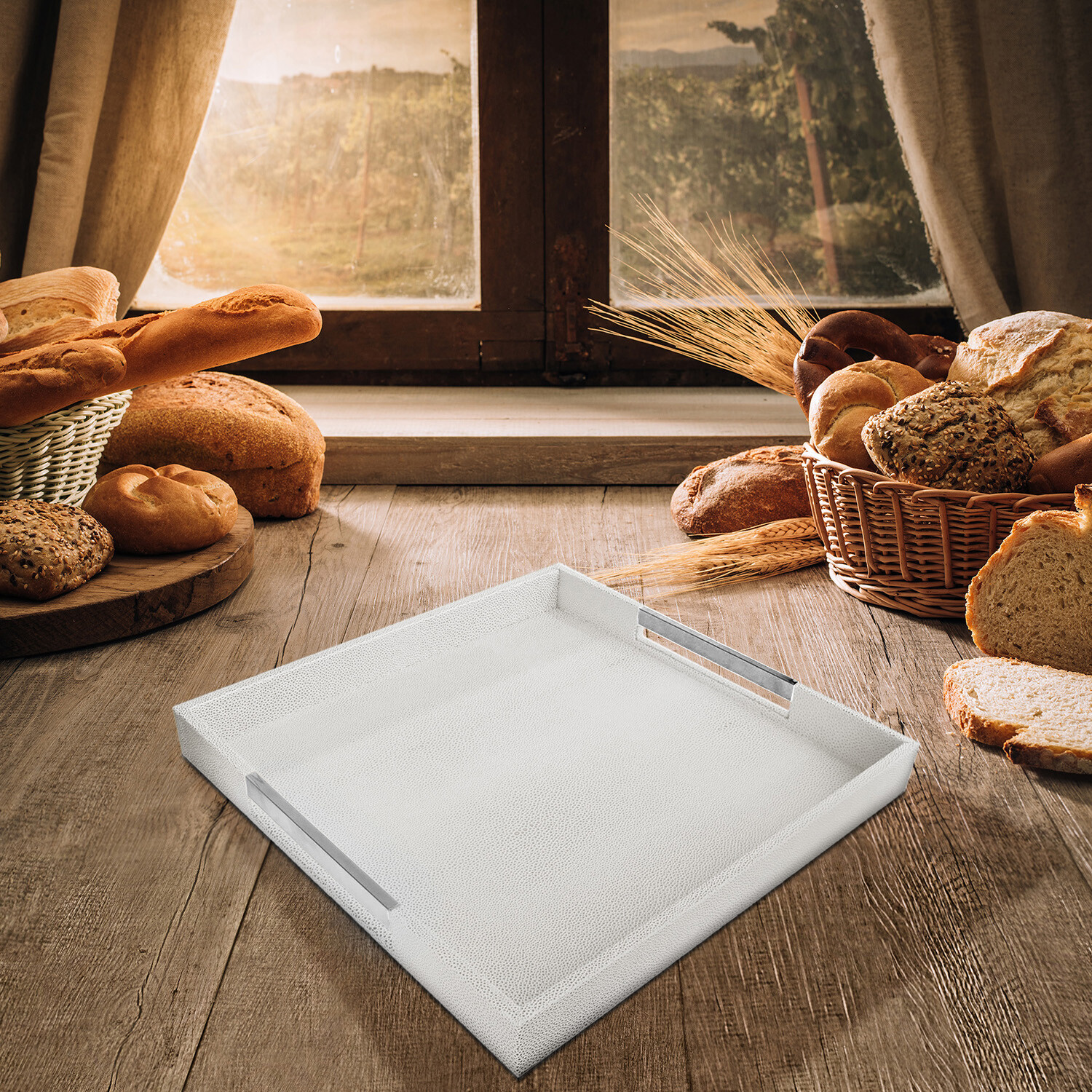 Whether you take on the role of the elegant host, indulge yourself with a meal in bed, or were looking for that perfect centerpiece base or housewarming gift, these serving trays from Jay Imports bring in that quintessential dose of drama and sophistication. Featuring a span of styles in sleek silhouettes, sturdy materials, and handles for easy holding, the assortment easily fits in to a variety of interior design aesthetics.