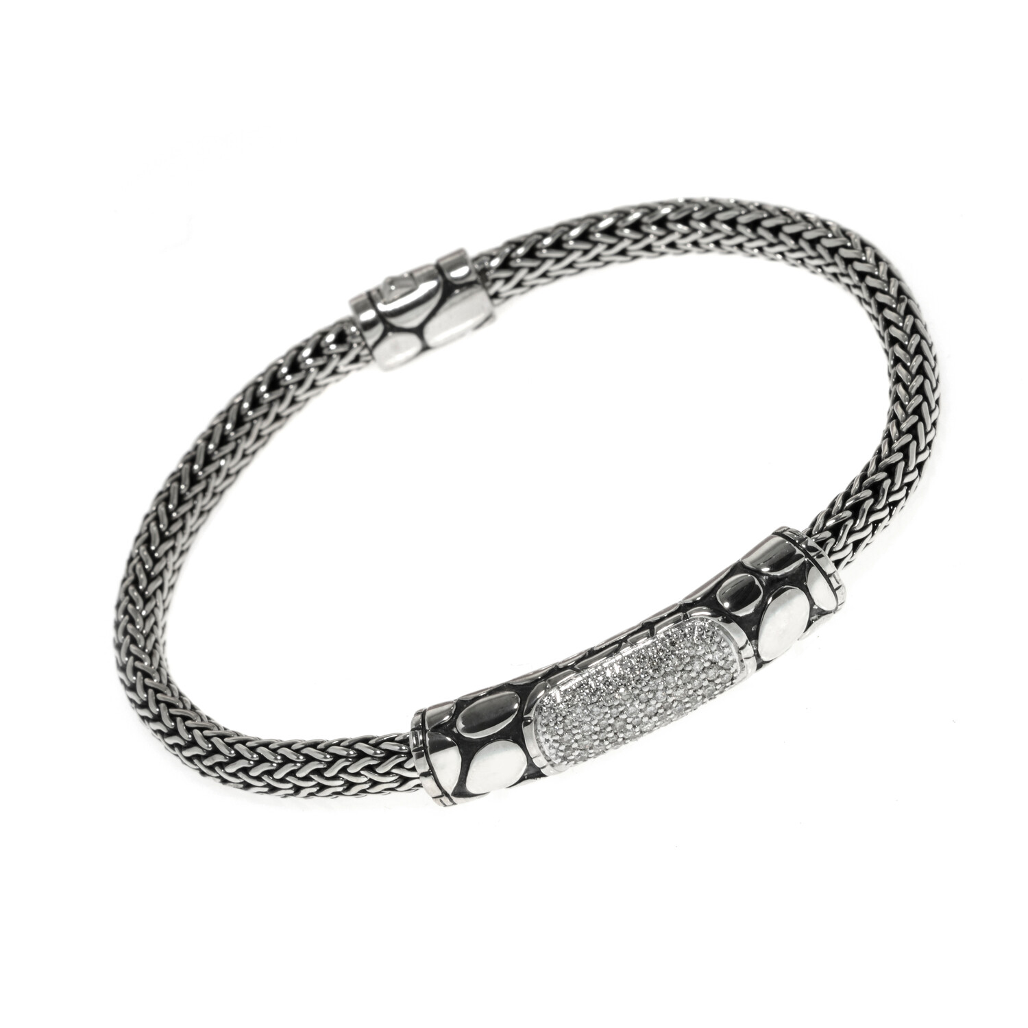 John Hardy Kali Sterling Silver + Diamond Station Bracelet // 7" // Store Display