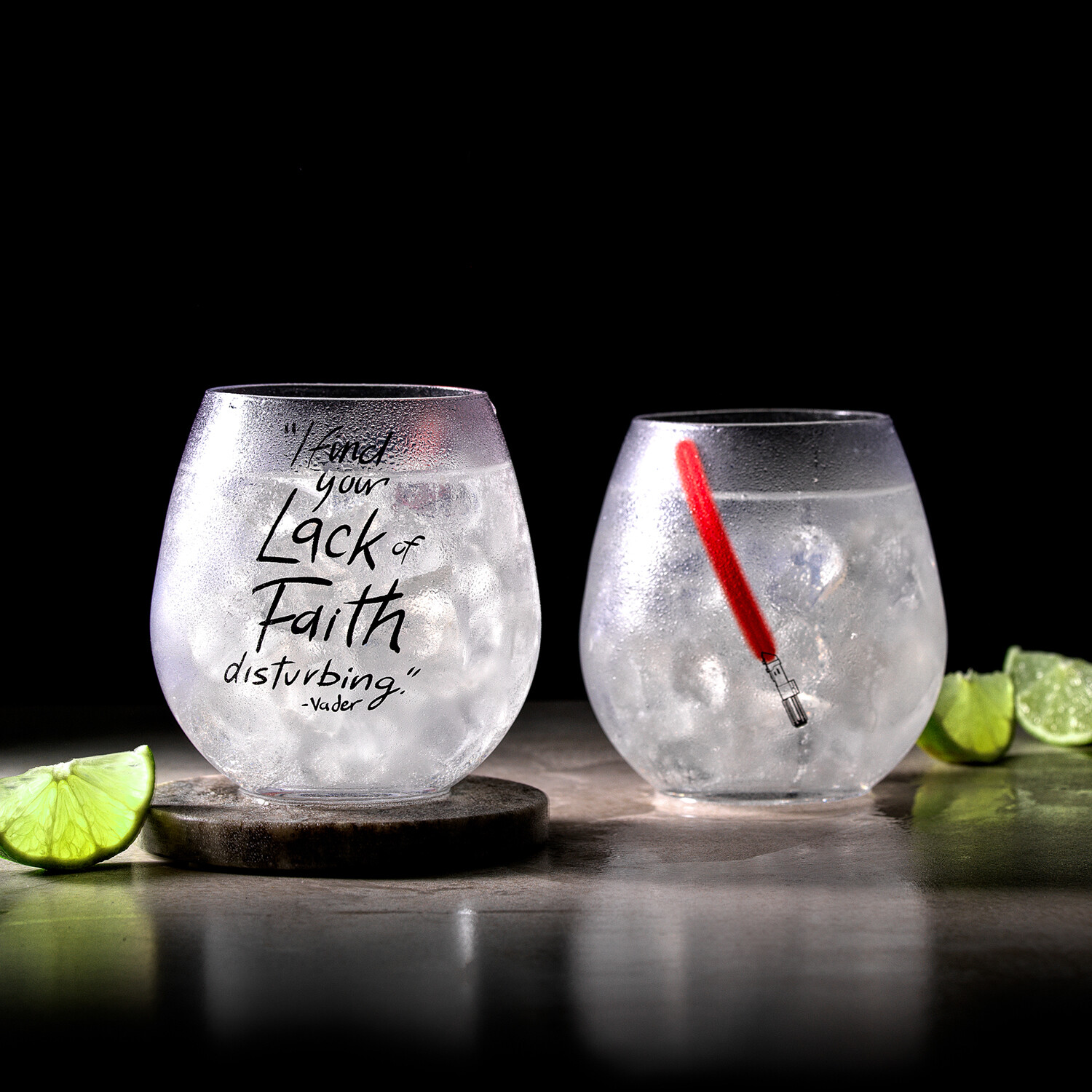 May the force be with you when you drink from these stemless drinking glasses. The Star Wars™ Darth Vader™ Lightsaber Collection of double sided glasses features your favorite Star Wars character’s most memorable quote. These are perfect for everyday use or entertaining.