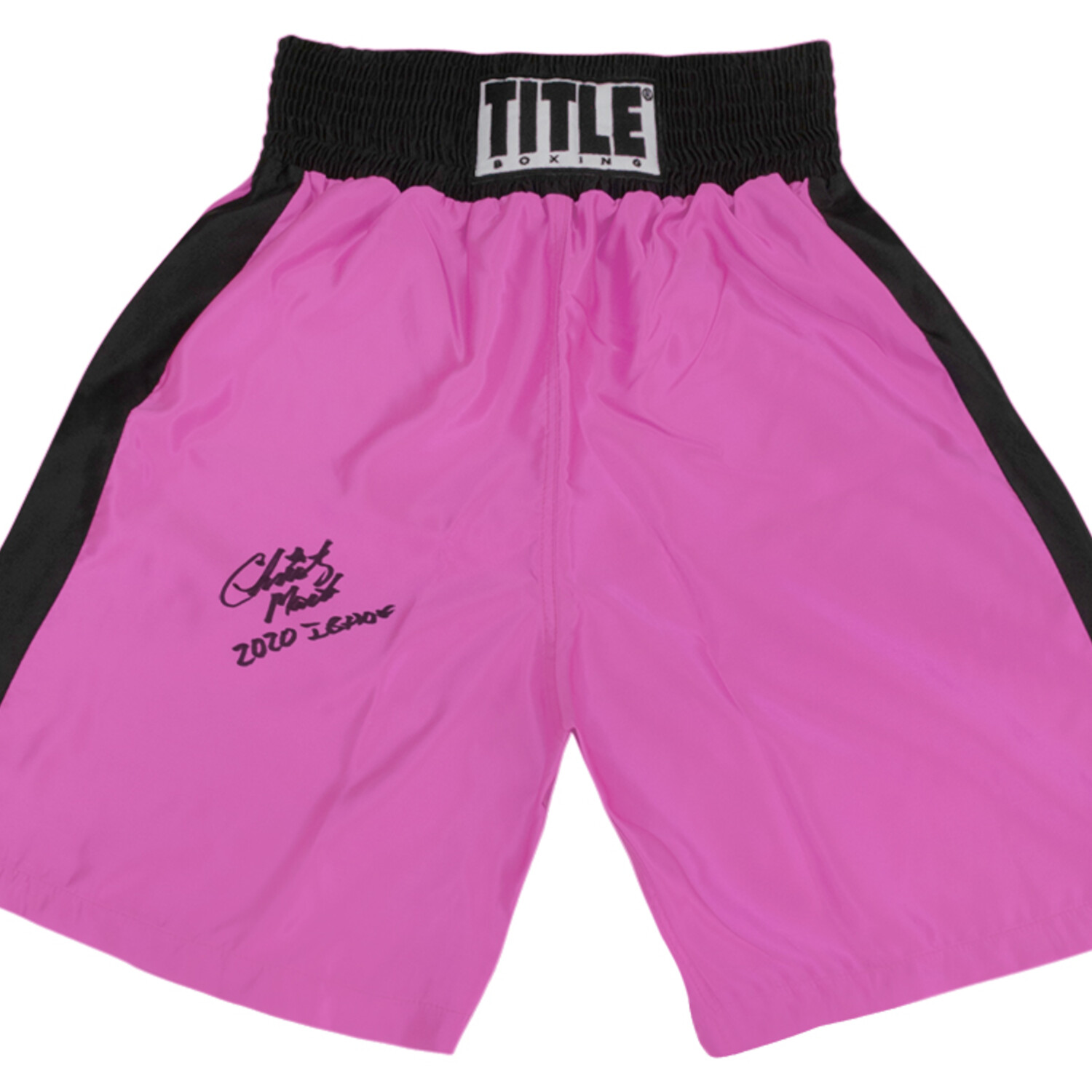 Christy Martin signed Title pink and black women's boxing trunks with '2020 IB HOF' inscription. Item comes with a Schwartz Sports Memorabilia tamper-proof numbered hologram and Certificate of Authenticity which can be verified online.