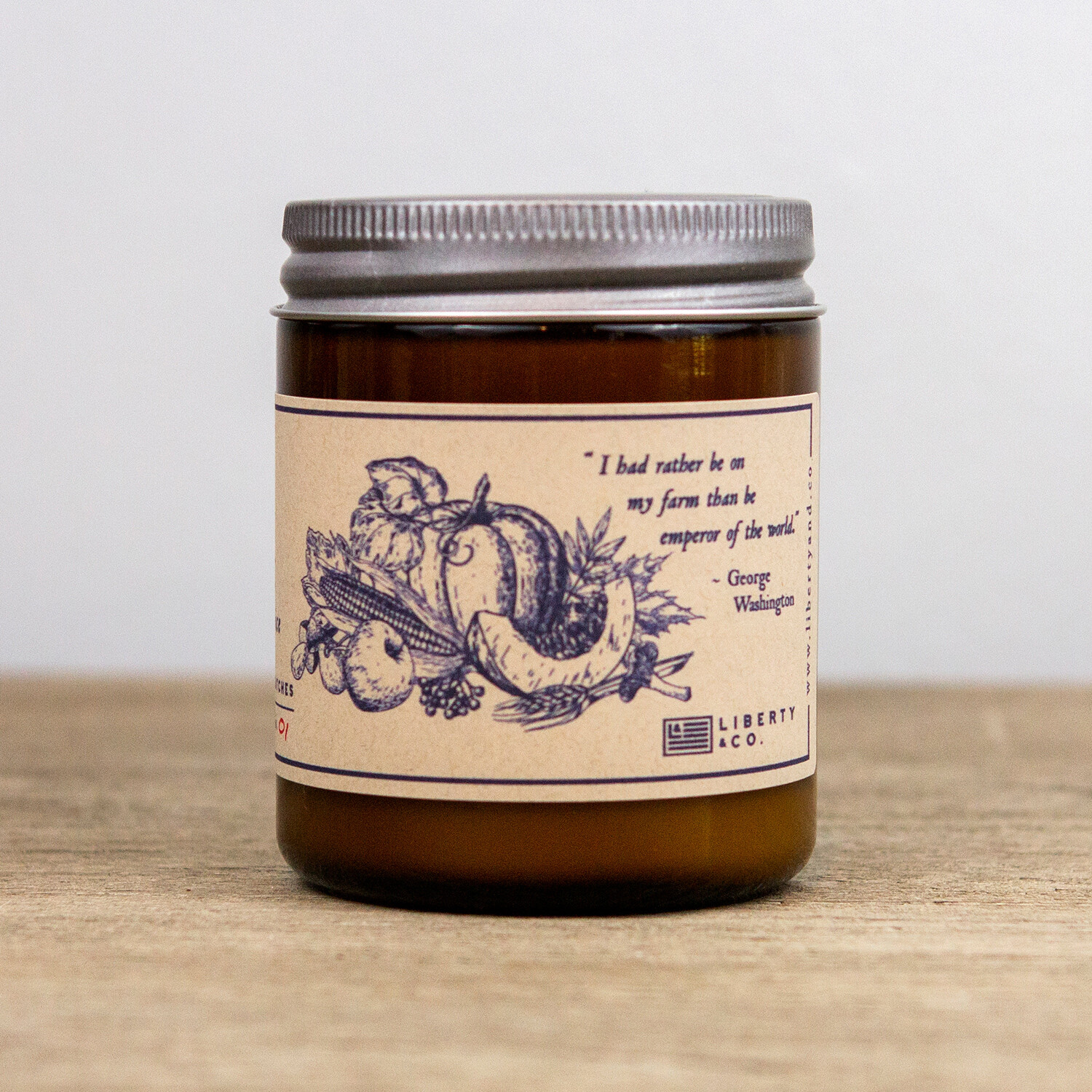 While reflecting on newspaper criticism of his Presidency, George Washington wrote in his journal, "I had rather be onmy farm than be emperor of the world." The Harvest candle is an ode to the simpler things in life that truly matter.