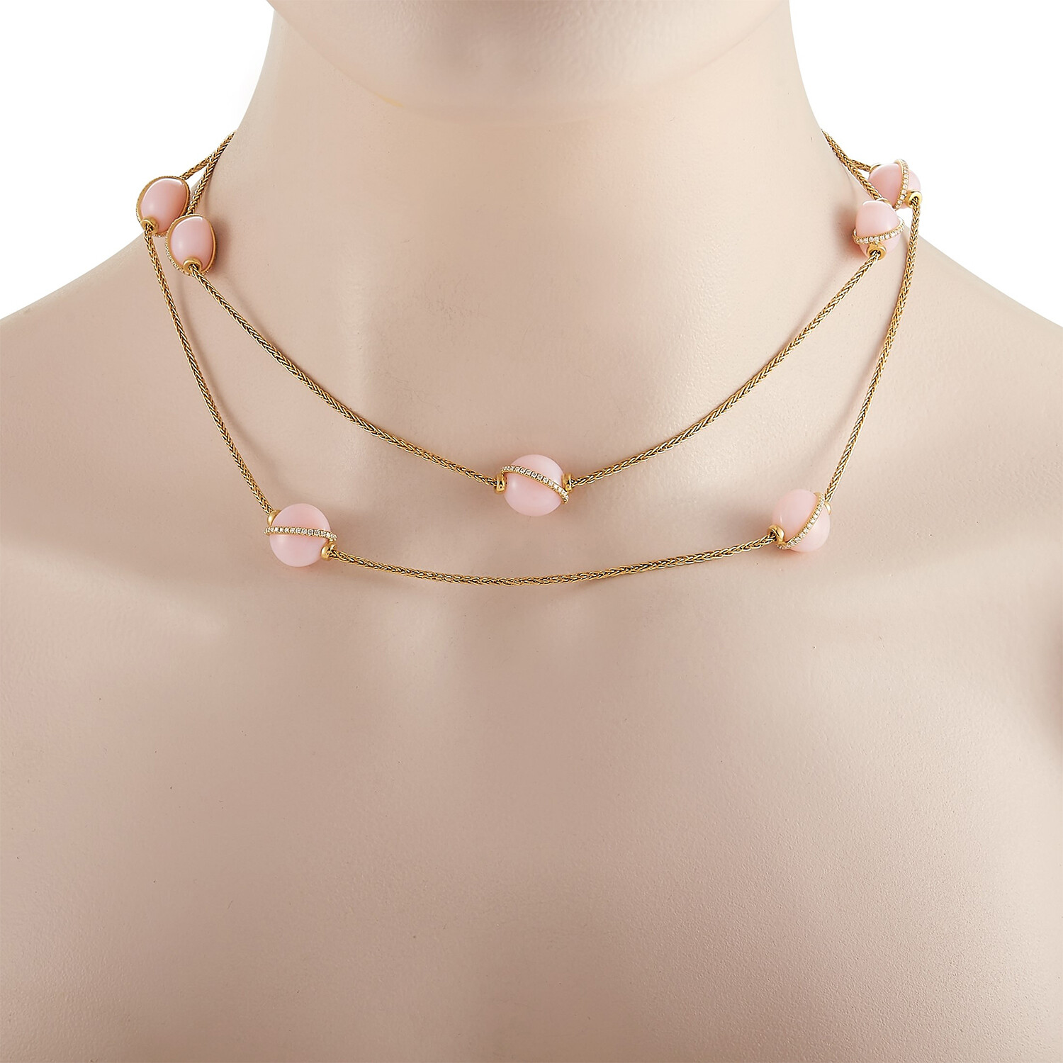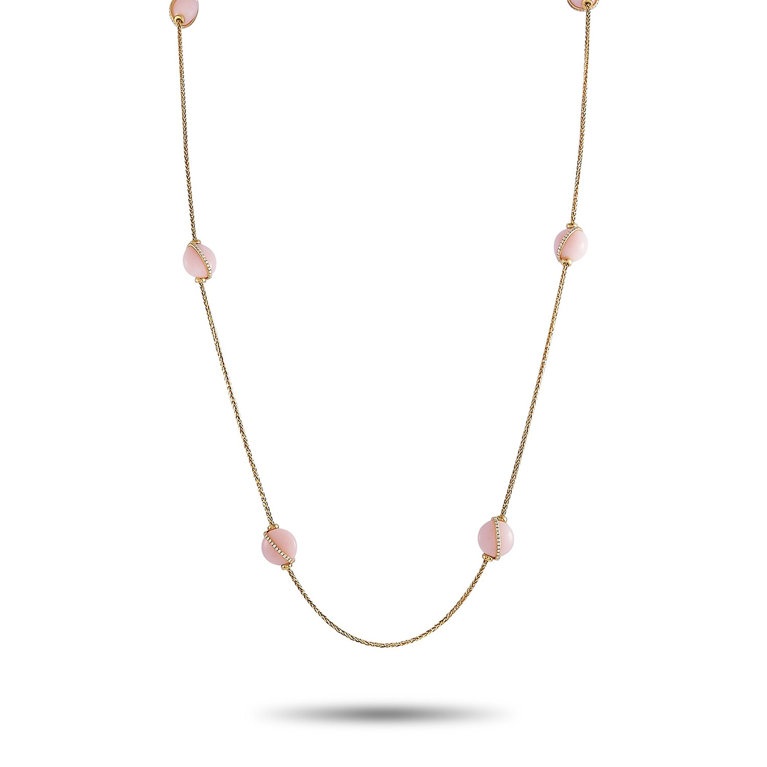 Fred of Paris // Baie Des Anges 18K Yellow Gold Diamond + Pink Opal Necklace // 34" // New