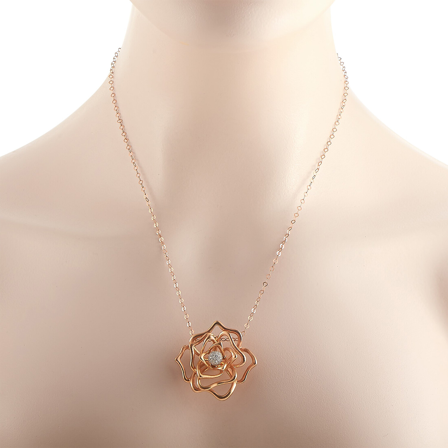 Roberto Coin // 18K Rose Gold Diamond Flower Necklace // 18" // Estate