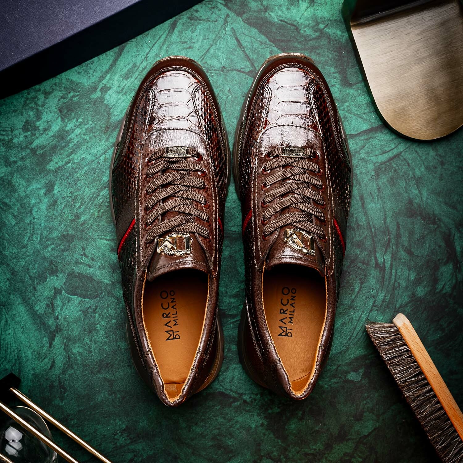 BRESCIA // Python + Calf Leather Sneakers // Brown