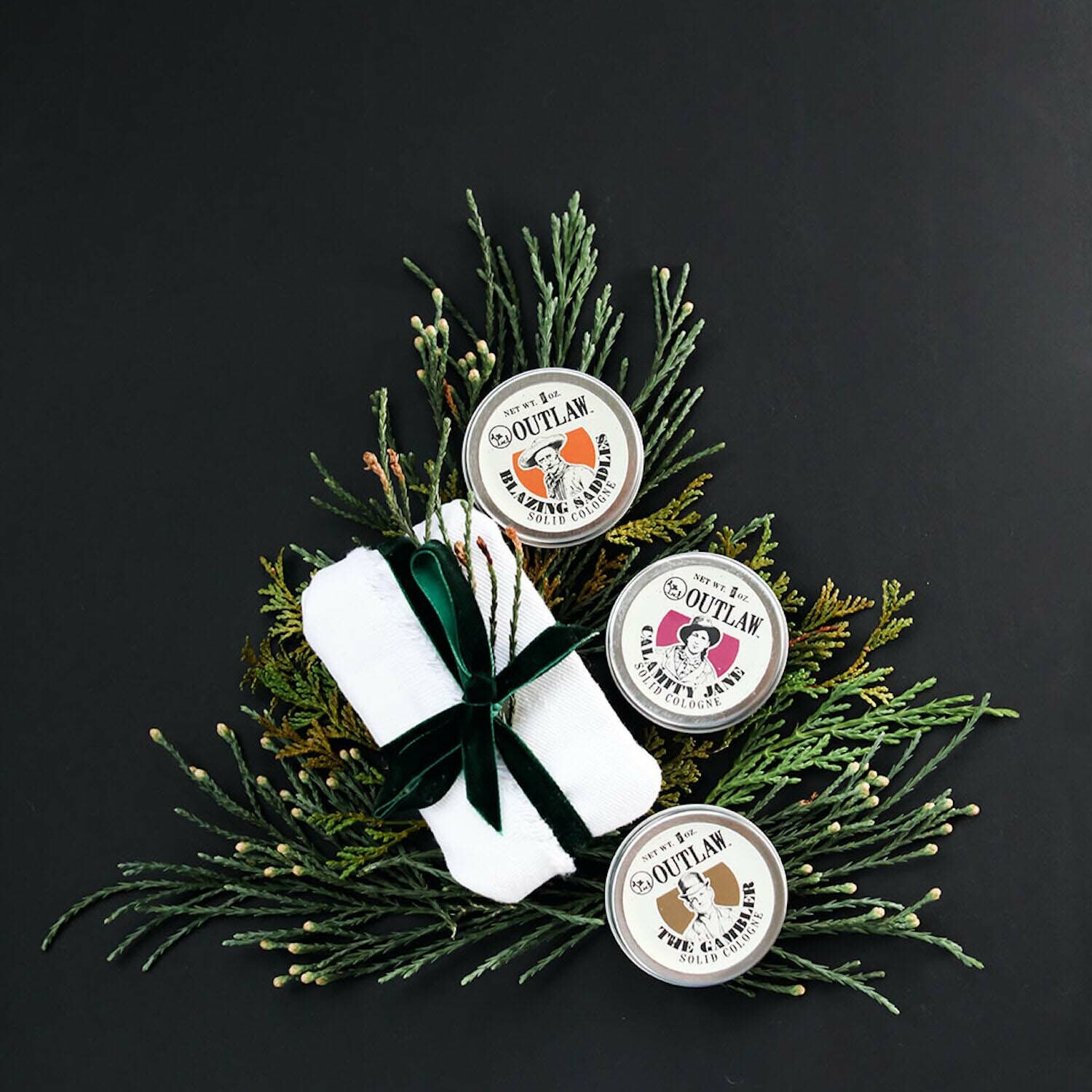 You're going to love this Outlaw's Life Solid Cologne Trio in tins for the Western adventure-seeker who wants to smell like Ennio Morricone wrote the soundtrack to their life. Handmade in small batches.