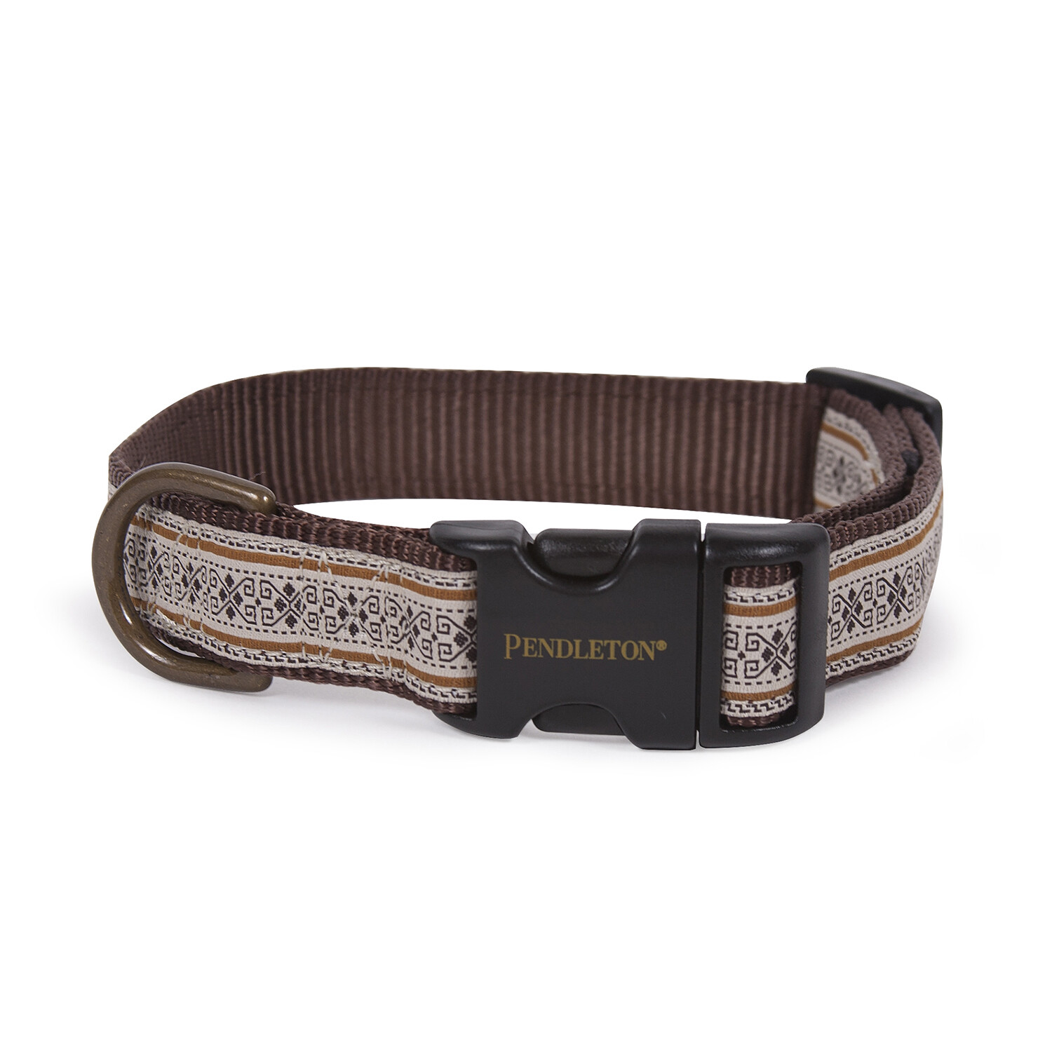 This Pendleton Classics Collar features Pendleton's Westerly pattern on a jacquard woven ribbon that is secured to a nylon webbing. It's equipped with a quick release buckle and durable brass hardware.