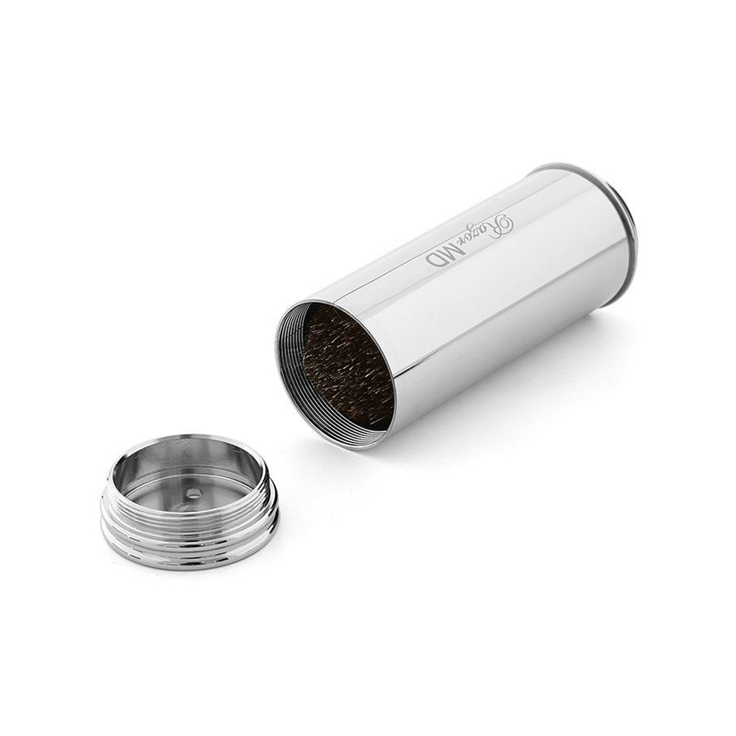 The Chrome21 Travel Shave Brush is a 3-piece design created for convenient use at home or while on the road. The brush head screws into handle which also doubles as a case for storage. The bottom cap has vents to ensure breathability and proper drying of brush when you're done.