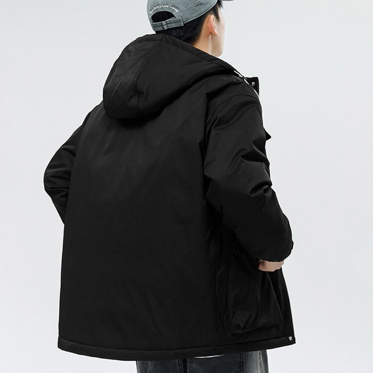 4 Front Pockets Hooded Jacket // Black