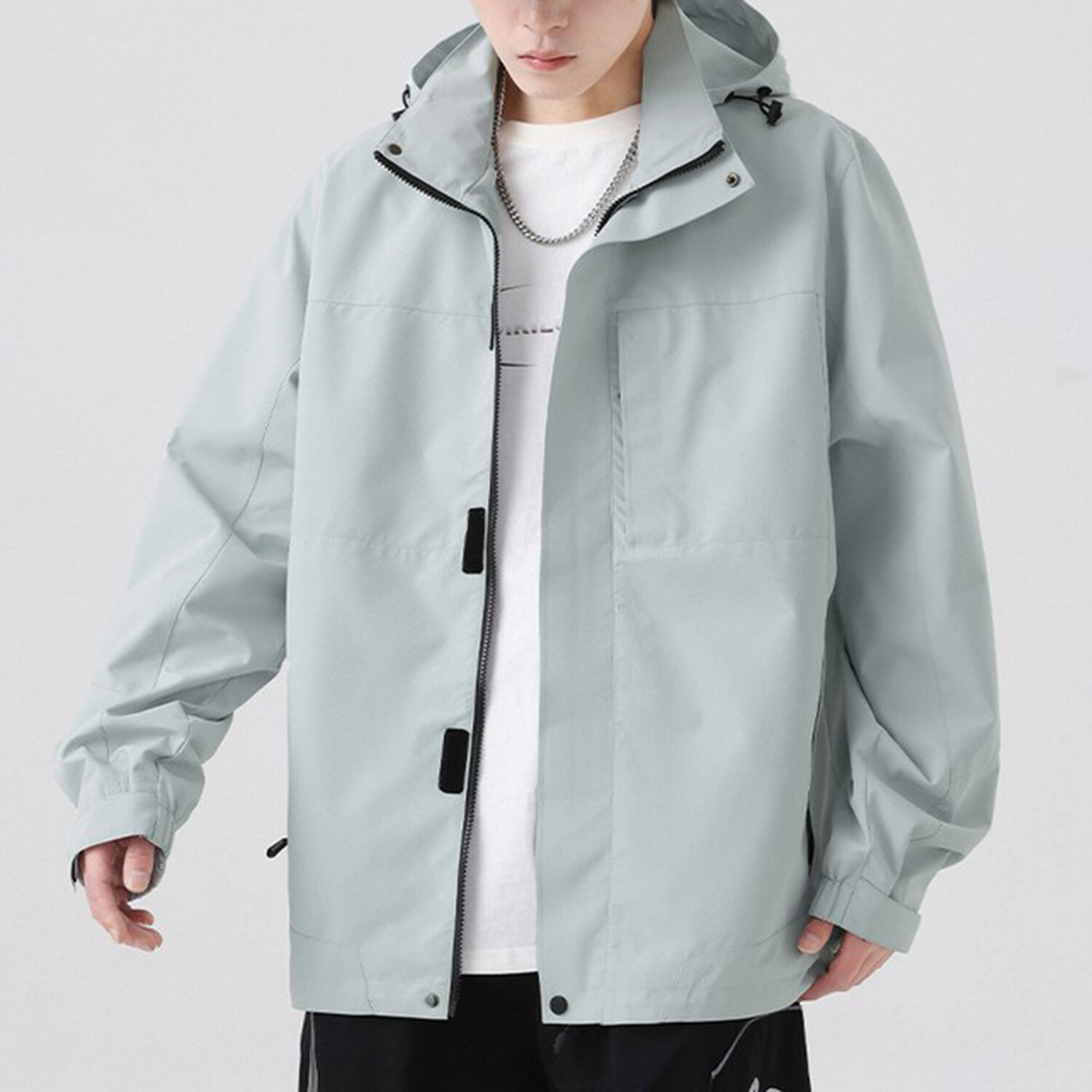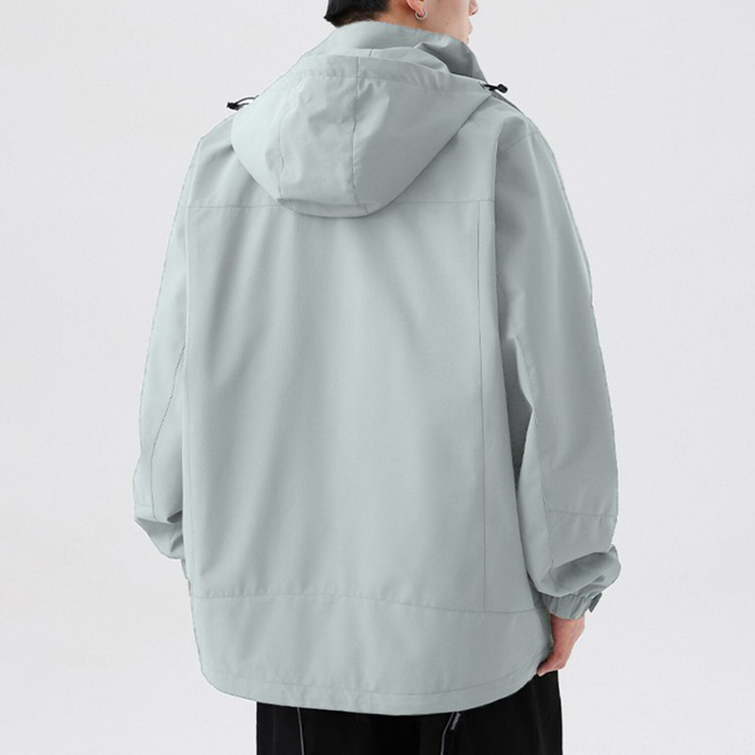 Zip Up & Velcro Hooded Jacket // Light Gray