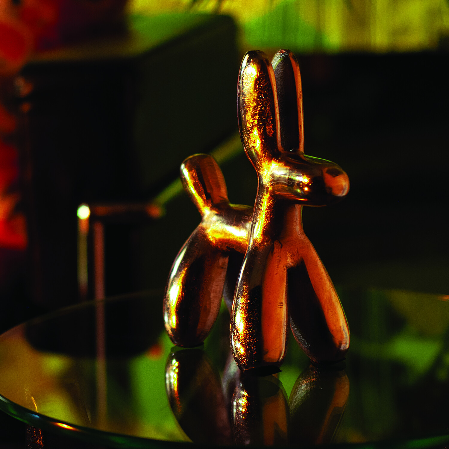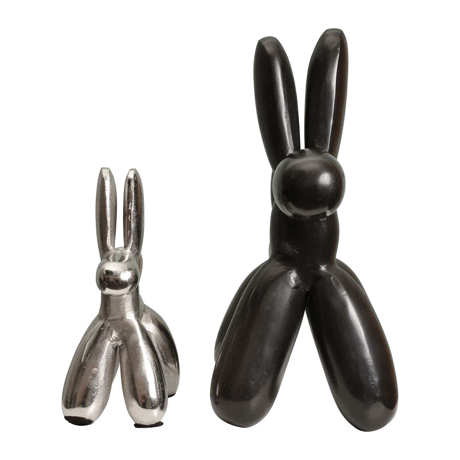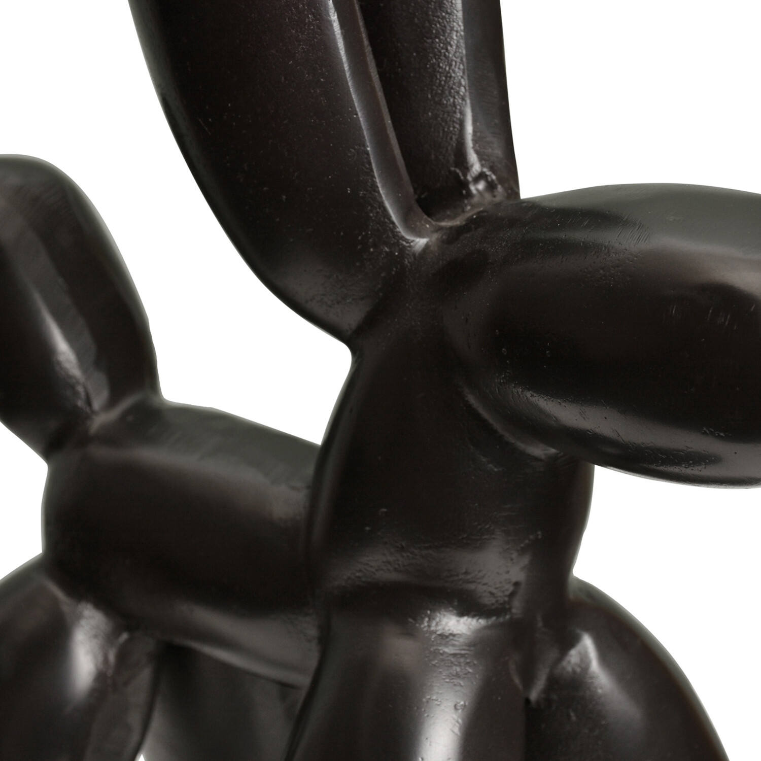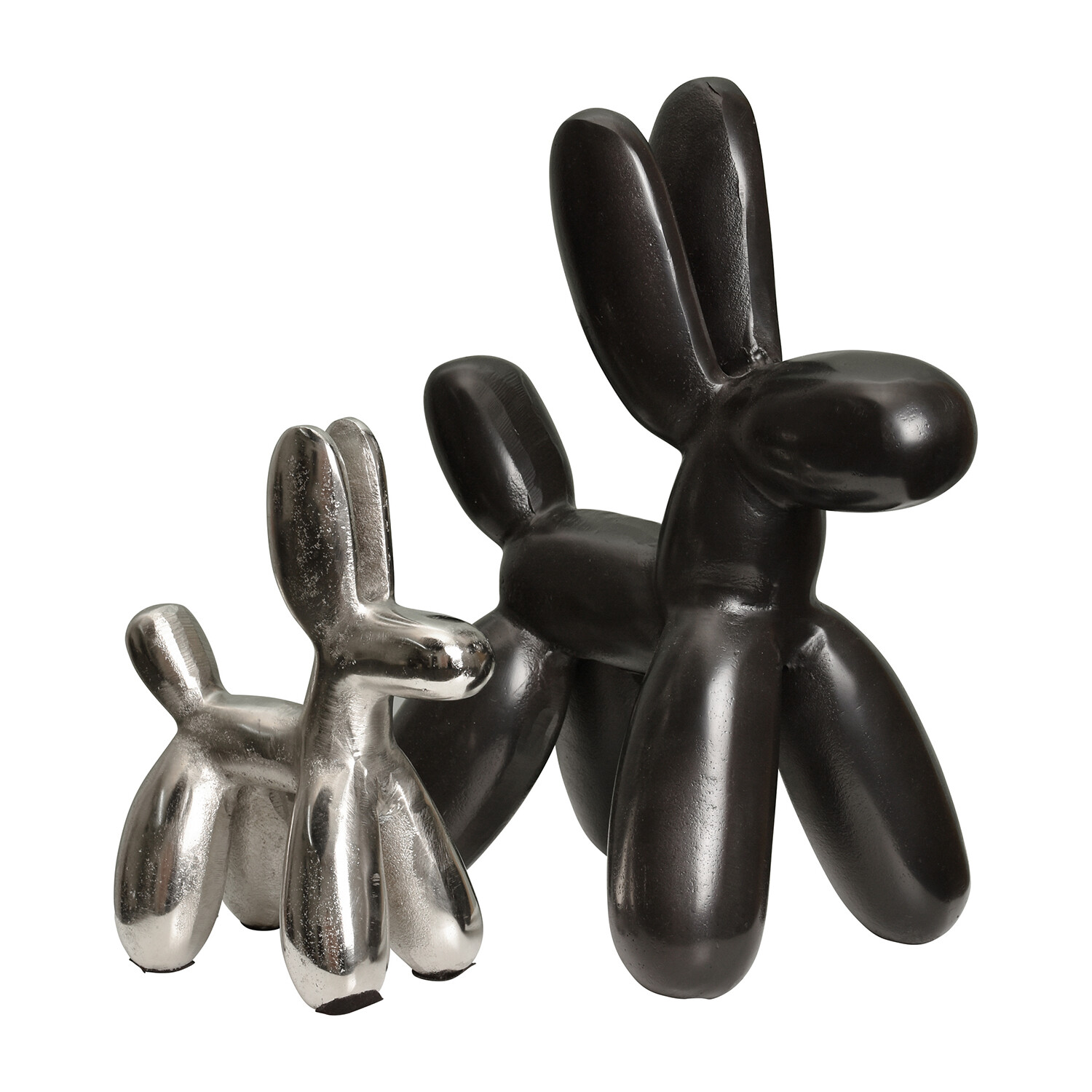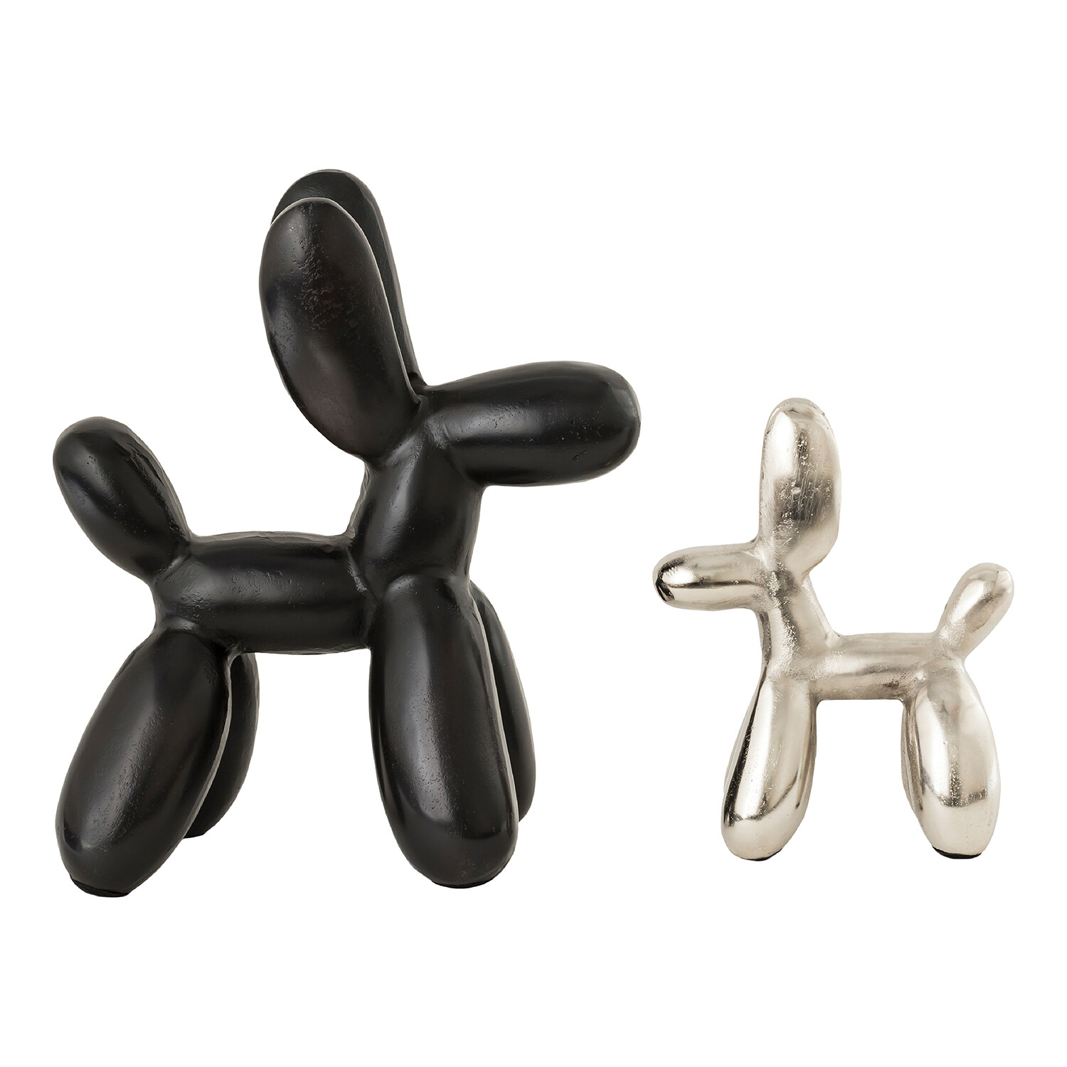 Pin the Pop Art design of this set of two dog statues on your interior inspiration board. Finished in metallic bronze and raw nickel, the air-filled aluminum shape gives each pup an inflated quality reminiscent of birthday party balloon animals. A must have accessory for modern art enthusiasts, the metal dog figurines stand ready to play on shelves and tabletops throughout the home.