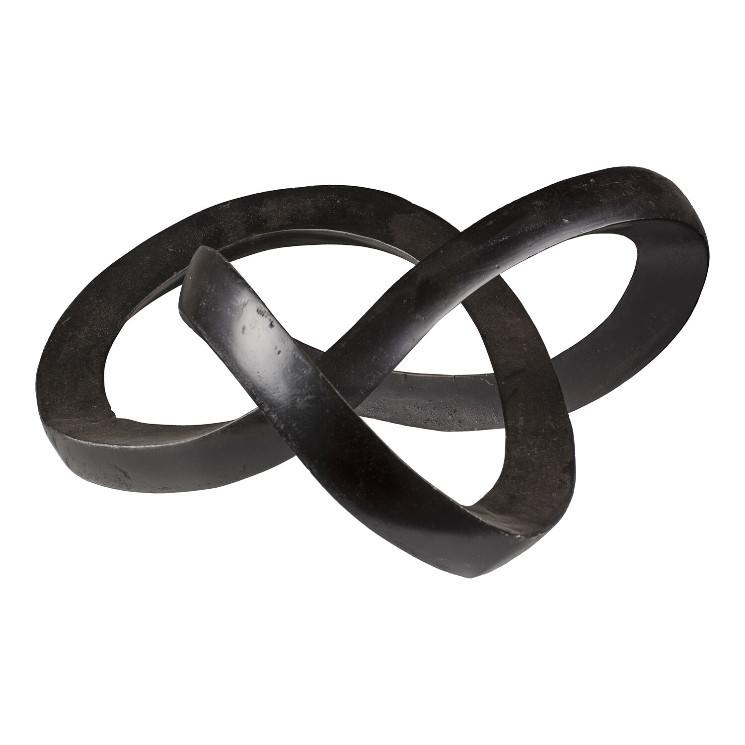 This abstract statue is a compelling decorative accent with its curvaceous silhouette and a warm bronze finish. The circuitous shape of the sculpture is formed by a continuous aluminum loop that twists and turns into a glamorous open knot. Mix and match the modern statue with other contemporary elements to create a distinctive tabletop arrangement that’s truly your own.