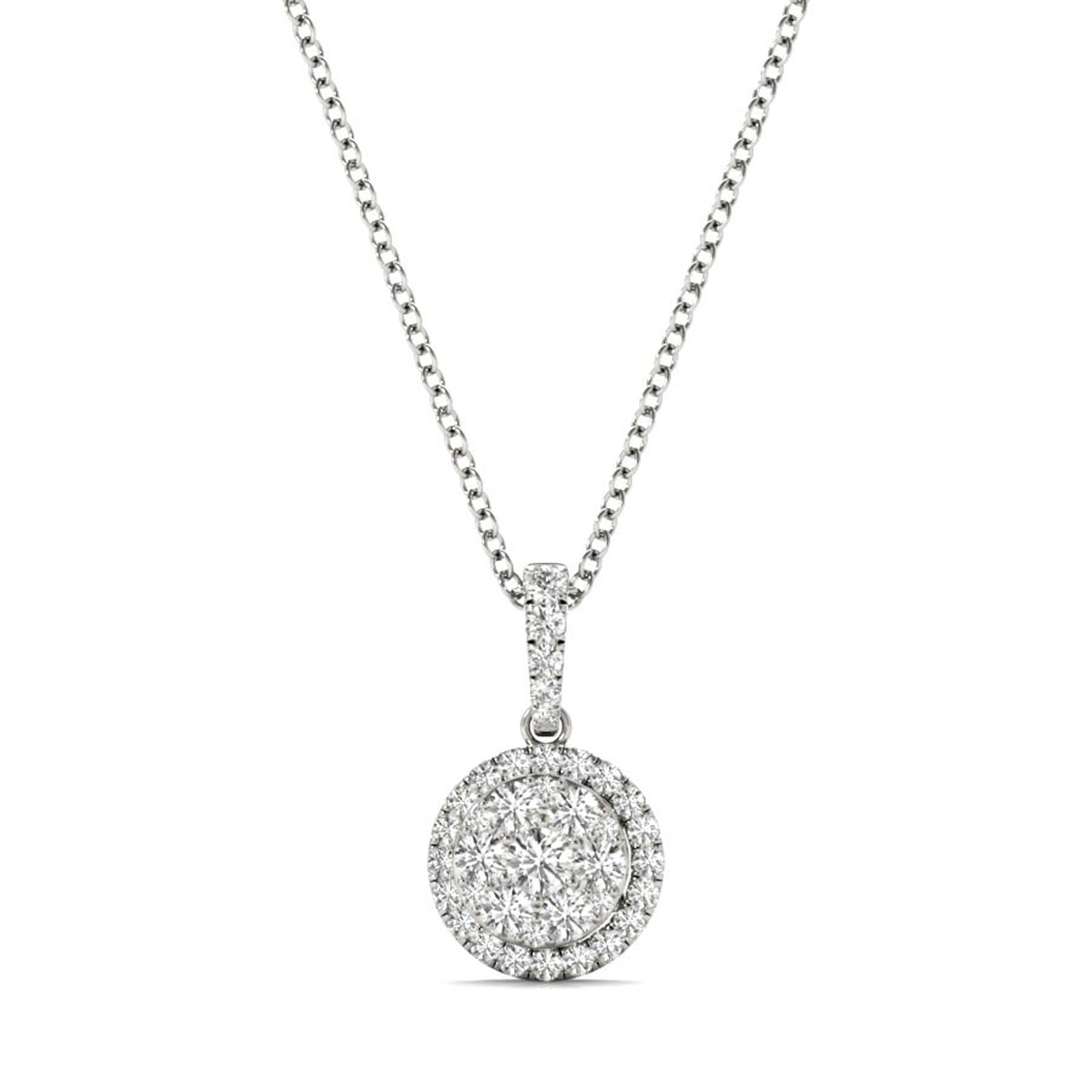18k White Gold Mini Round Halo Cluster Pendant Necklace // 18" // New