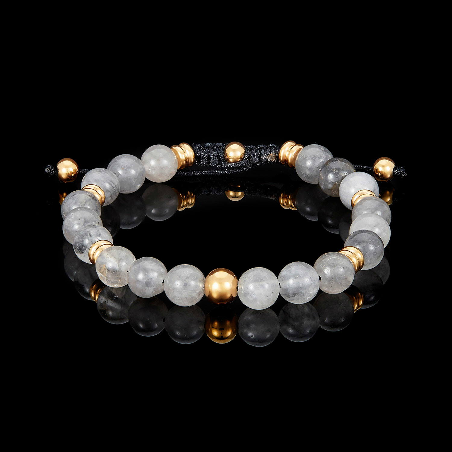 Cloud Crystal Quartz Stone + Gold Plated Stainless Steel Adjustable Bracelet // 7.75"