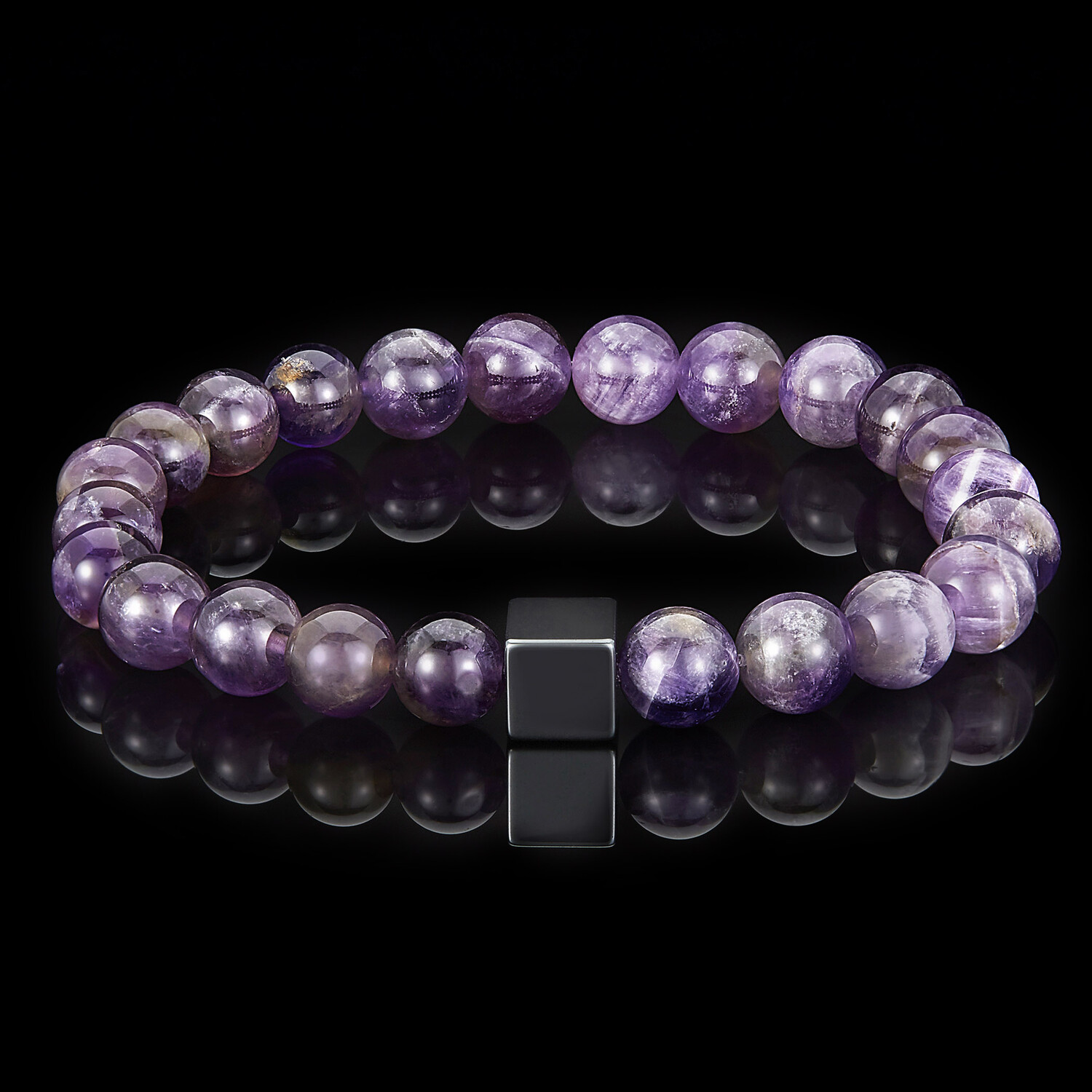 Amethyst + Hematite Cube Stone Stretch Bracelet // 8"
