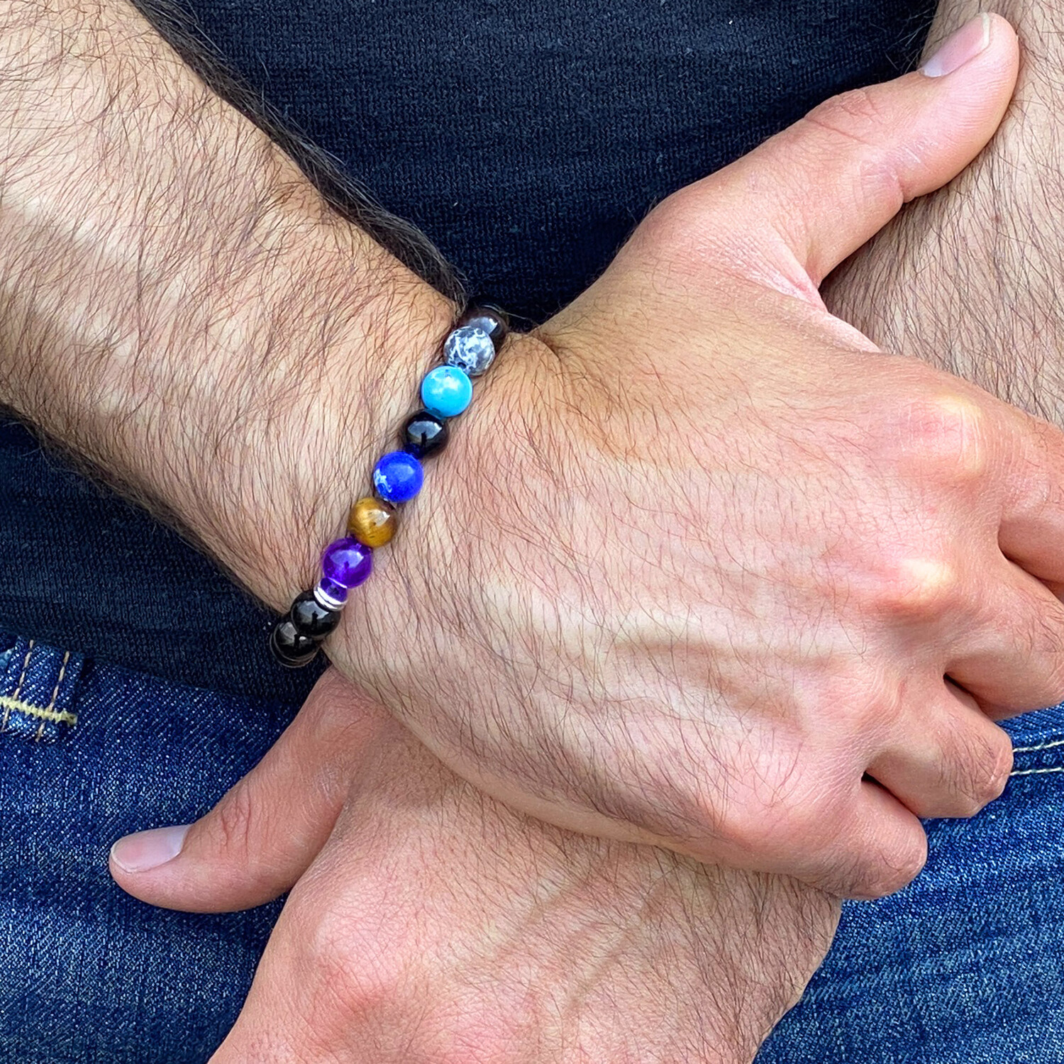 Polished Natural Stones + Polished Onyx Stone Bead Stretch Bracelet // 8"