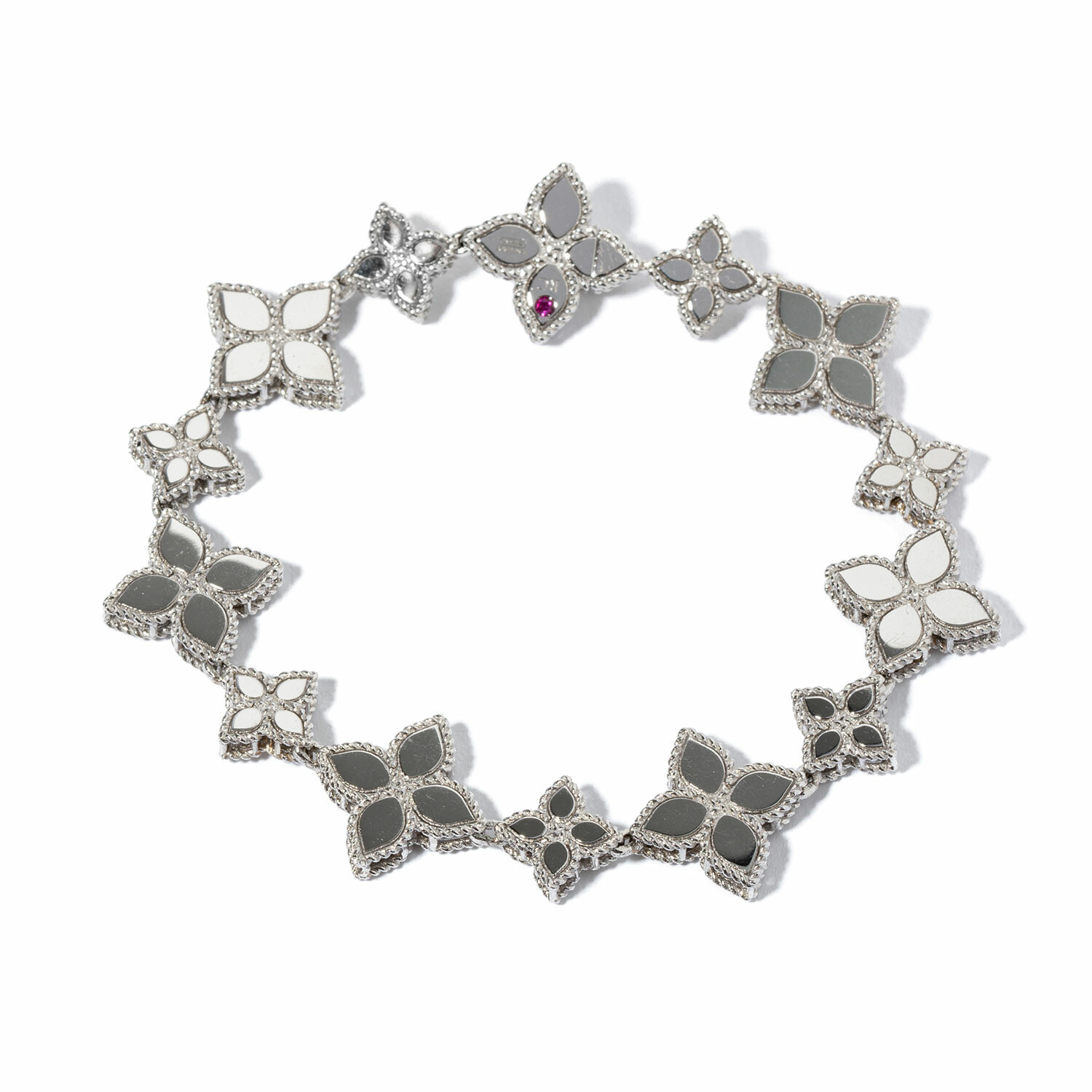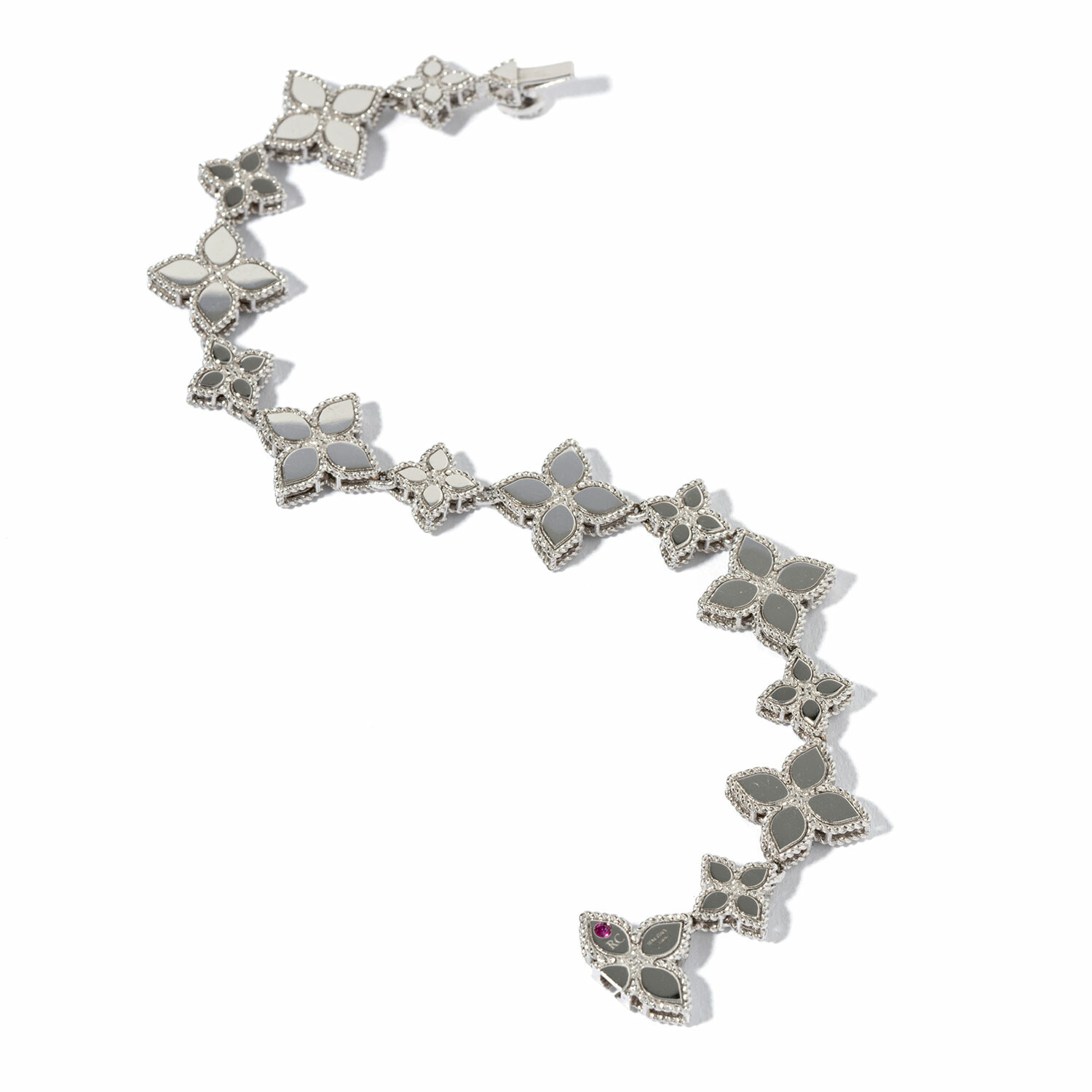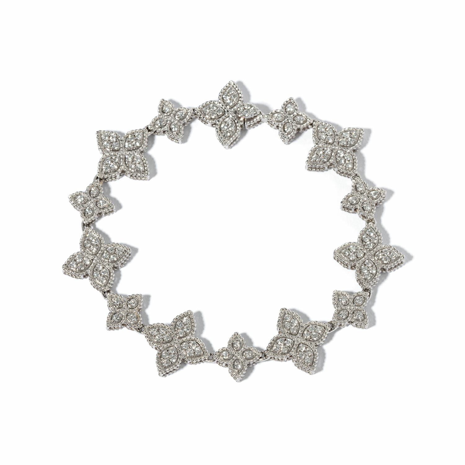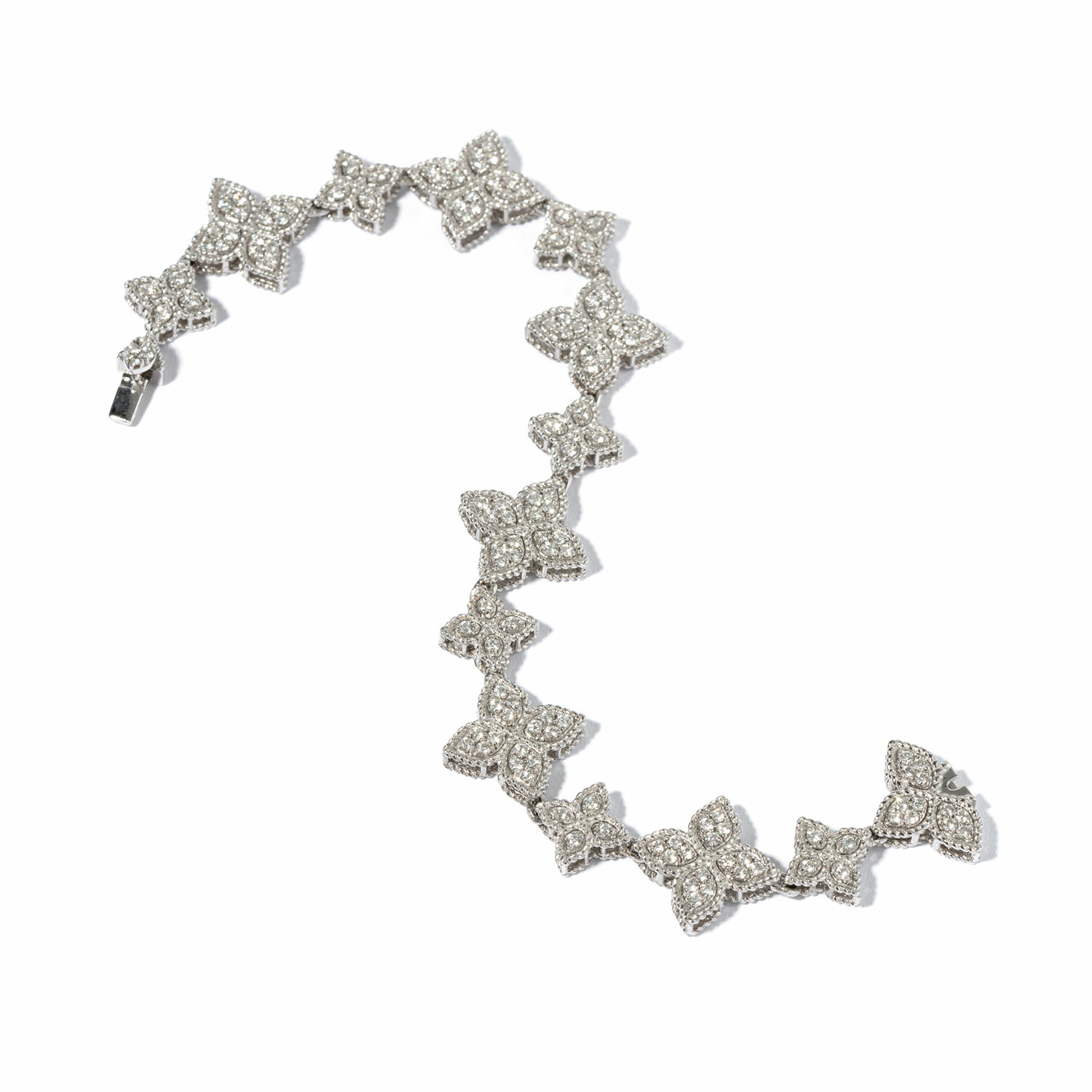 18k White Gold + Diamond Flower-Link Pave Bracelet // 7" // New