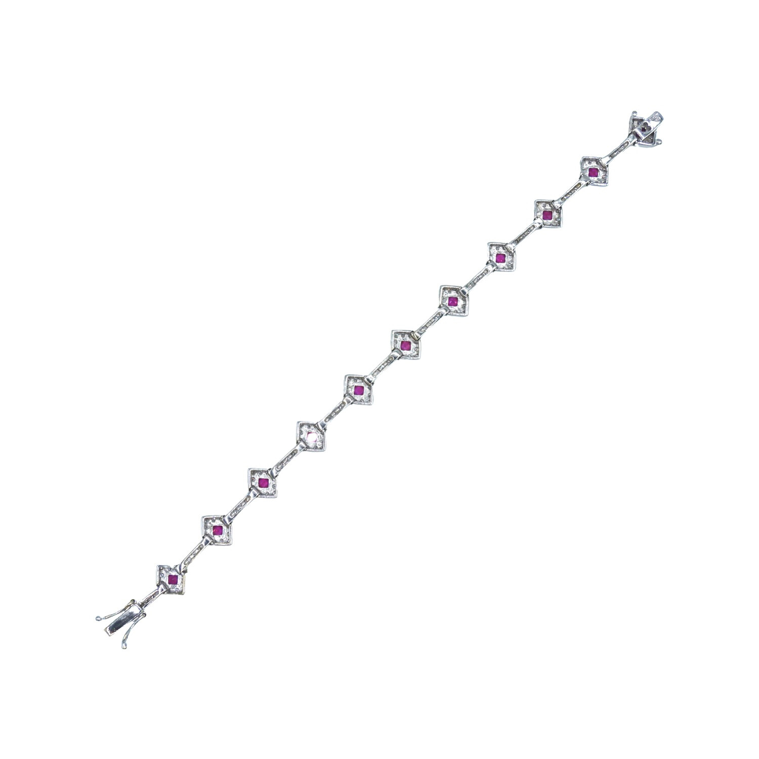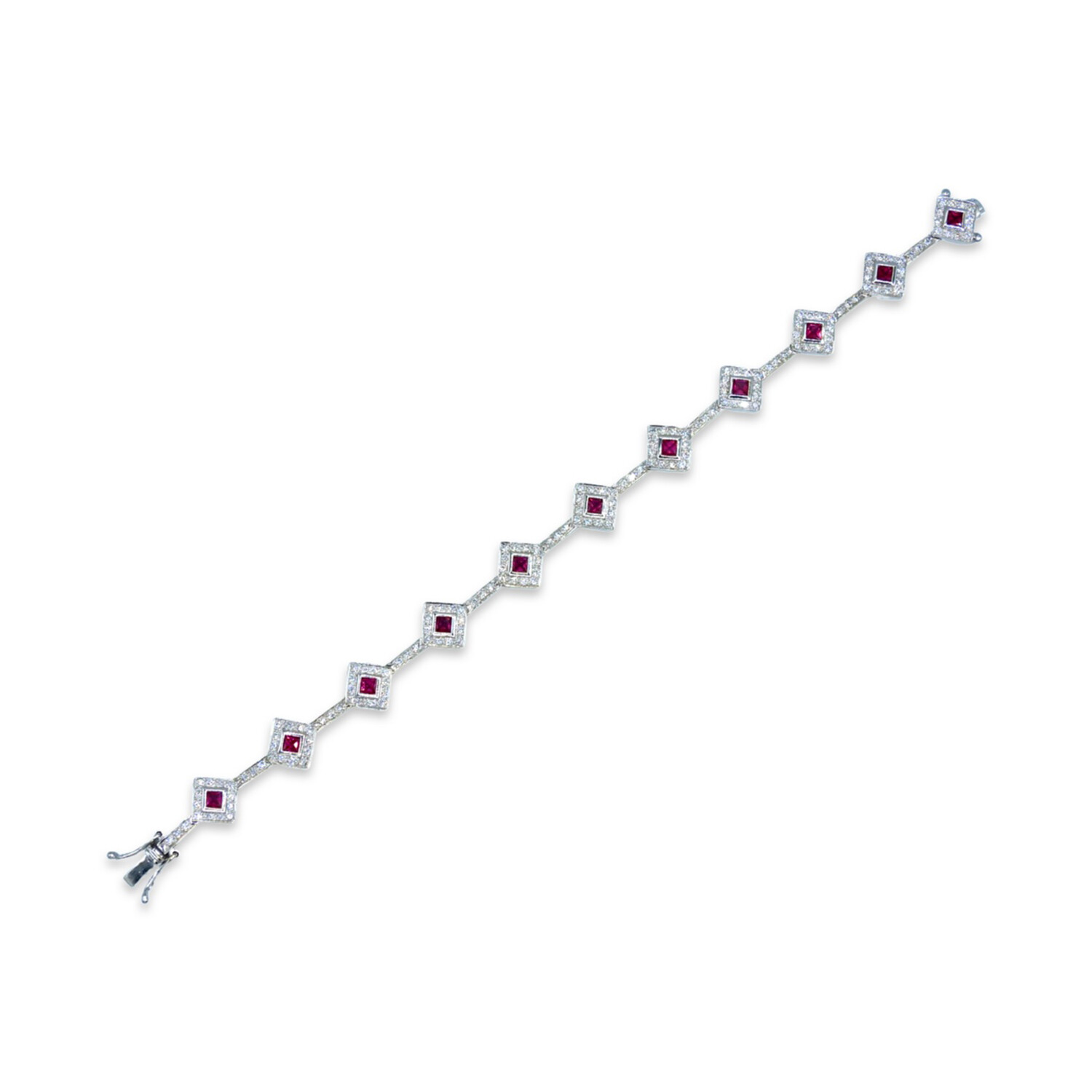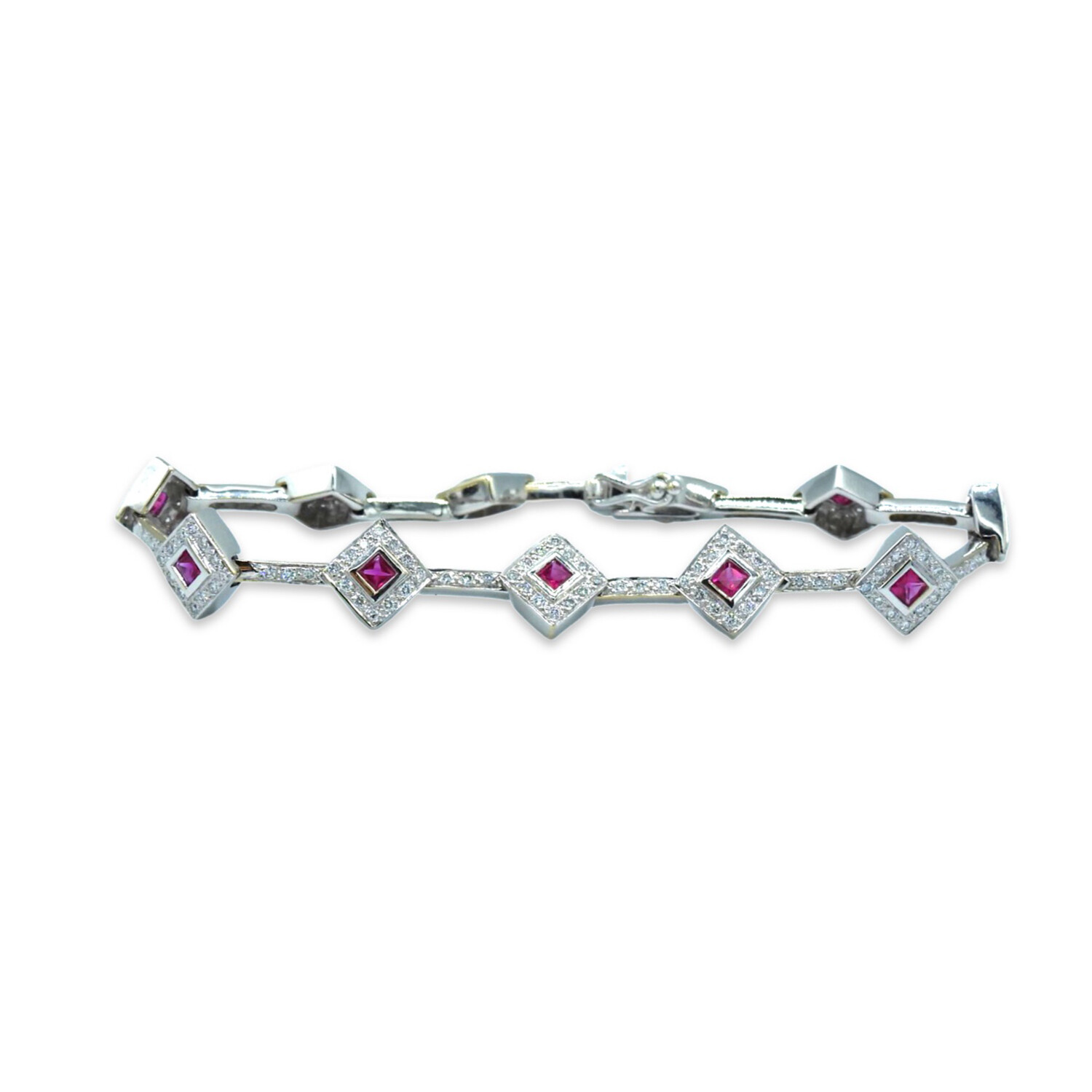 Estate // 18K White Gold Diamond + Ruby Bracelet // 7" // Pre-Owned